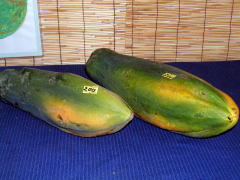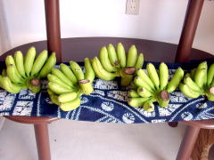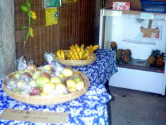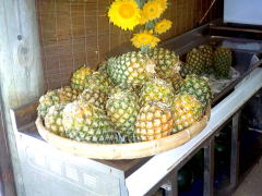| Very sweet pineapples (200 yen) | Native bananas (200~400 yen) | Large papayas (200~300 yen) |