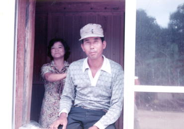 | 1975(昭和50)年頃のおじい、おばあと長女の洋子さんです。いまもそんなに変わっていません。 |