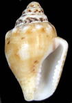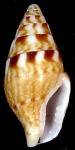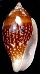 | 殻高7〜8cmの中型のイモガイ。殻は樽形で、殻の側面はよく膨れる。螺塔はやや高く、肩が張る。肩と縫合の間はU字型の溝になる。体層全体に細かい螺肋が密に走る。殻口は広く、殻底部で広がる。殻色は、白地に茶褐色の不定形斑があり、茶褐色斑の中には螺肋に沿って黒褐色の螺条がある。殻口内は純白色。リーフ際の岩盤上のくぼみや割れ目、死滅サンゴの礫帯などに生息し、比較的普通にみられる。 |