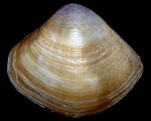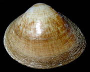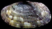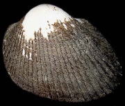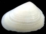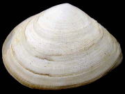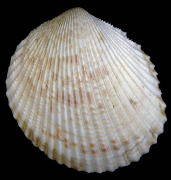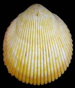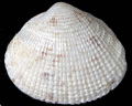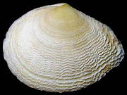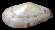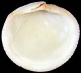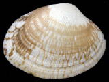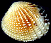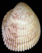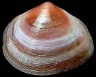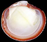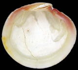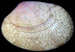 | 殻高4〜5cmの中型のイモガイ。殻は樽形で、殻の側面は丸みが強い。螺塔は低く、肩はやや丸い。肩と縫合の間はU字型の溝になる。殻底部に細い螺肋が走る。殻口はやや広く、殻底部で広がる。殻色は、灰白色の地に小黒点と小白点が密に散らばる。殻口内の外唇端部は白色で、殻口奥が淡紅色。これが朝焼けを連想させることが和名の由来。礁池内の砂地に生息するが、個体数は少ない。 |