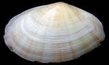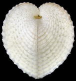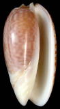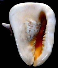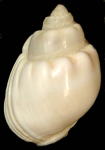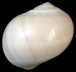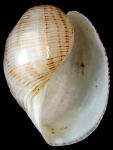 | 殻高8cm以下の中型のイモガイ。生時は厚いビロード状の殻皮を被る(右の写真)。殻は整った逆円錐形で、殻の側面は直線的。螺塔は非常に低く、肩が張る。肩と縫合の間はU字型の浅い溝になる。殻表はやや粗雑で光沢はない。体層の下半部には細い螺肋が多数走る。殻口は非常に狭く、直線的で細長く開く。殻色は全体に肌色で、殻底部は殻口内も含めて紫彩される。ヤセイモに似るが、大型で殻表に顕著な螺肋がないことで区別される。礁池内の砂地に生息する普通種で、砂に潜っている。 |