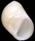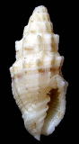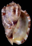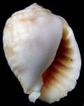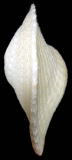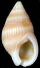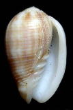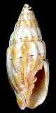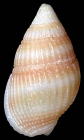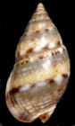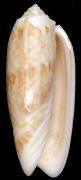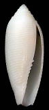 | 殻高3〜4cmの小型のイモガイ。殻は整った逆円錐形で、殻の側面は直線的。螺塔はほとんど平坦で、肩が張る。殻表には螺肋や彫刻はなく、ほとんど平滑。殻口は非常に狭く、直線的で細長く開く。殻色は全体に淡茶色で、肩部と体層中央部に白帯があり、白帯には茶褐色の稲妻状斑を伴い、個体によっては白斑列になることもある。礁池内の砂地に生息するが、個体数は少ない。 |