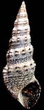 | 殻高2〜2.5cm。殻は円錐形で、螺塔は著しく高くそびえる。殻には縦肋と螺肋が規則的に走り、殻全体が格子状彫刻で覆われる。縫合下部には顆粒列がある。体層はよく膨れ、殻口外唇は前方に張り出す。水管溝はない。殻色は暗茶褐色で、淡色の螺条をめぐらす。マングローブ林の泥上やそれに連なる干潟の砂泥上に生息し、場所によっては群生する。 |