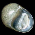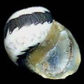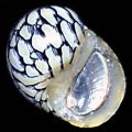 | 殻高1〜1.5cm。殻はほぼ菱形、本科貝類では螺塔は低い。殻には縦肋と螺肋が規則的に走り、殻全体が格子状彫刻で覆われる。体層はよく膨れ、背面には縦張肋がある。外唇はやや肥厚し、水管溝はほとんど形成されない。殻色は白色と灰黒色が混在する。白帯が出る個体もある。干潟の砂の上や潮間帯に生息する。場所によっては普通にみられる。 |