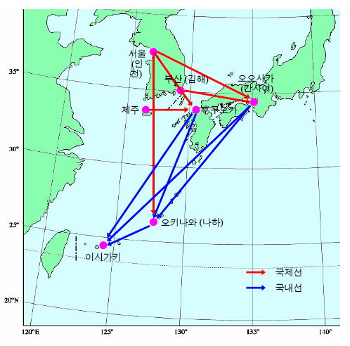 ☆는 4/1∼9/30의 기간운항. ★는 10/1∼3/31의 기간운항. ◎는 7/1∼8/31의 기간운항.