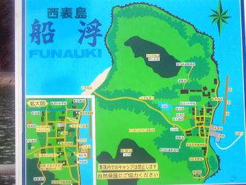 섬의 서방의 후나우키만의 안 쪽에 있는 부락에서, 현존하는 부락에서는 이리오모테섬에서 가장 서쪽에 위치합니다. 이 부락에의 육로는 없고, 그야말로 “뭍의 고도”입니다. 일찌기는 이 부락에서도 더욱 서쪽에 아미토리(網取), 사키야마(崎山), 카노카와(鹿川)라고 하는 부락이 있었지만, 모두 폐촌(廢村)이 되었습니다 (아미토리는 토카이(東海)대학의 실험소가 새롭게 할 수 있었기 때문에 또 사람은 살고 있지만 부락의 형태가 아니다). 후나우키에의 가는 길은, 시라하마(白浜)에서 1일 3∼4편의 후나우키해운의 정기선인 후나우키마루가 운항하고 있으므로 비교적 용이합니다.