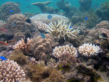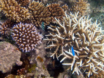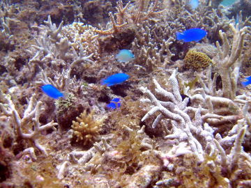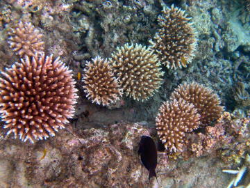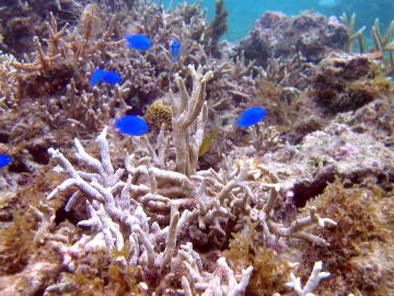 이 해안의 앞바다에는 리프(reef)는 없지만, 숨겨진 암초가 점재해 있어서 산호나 물고기도 많고,또한 물결이나 흐름도 없으므로 슈노겔링으로 적당합니다. 아래에 있는 수중사진은, 2003년9월25일에 홈 페이지 관리자가 이다 해안 앞바다에서 슈노겔링으로 촬영한 것인데, 해안선(물가)에서 몇십미터 앞바다로 나가면 이러한 아름다운 광경을 즐길 수 있습니다. 정말로 이리오모테의 좋은 곳이라고 말할 수 있는 장소이지요.