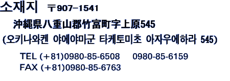 숙박에 관한 문의나 예약은 전화나 팩스로 직접 칸피라소로 연락을 하시기 바랍니다. 이리오모테섬의 관광등에 관한 문의는 메일로 됩니다.