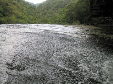 암반이 넓어지고 있고, 폭포의 암반을 가로지르기 위해서는 물의 흐름 안을