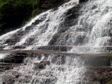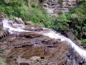 계단장의 암반 위를 흘러내리는 수류가 만들어