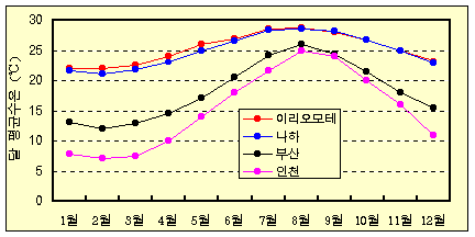 기준으로 하여 구분합니다.이리오모테의 경우 월 평균 기온이 가장 낮은 1월이