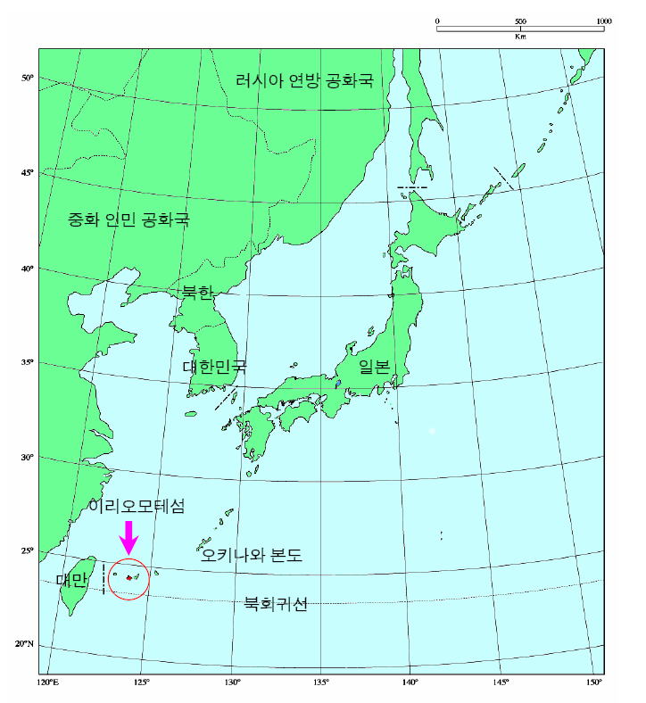 대만(臺彎)까지 약 200km, 북회귀선까지는 불과 100km의 거리로, 오키나와 본도(沖繩本島)보다도 대만쪽에 훨씬 가깝습니다.