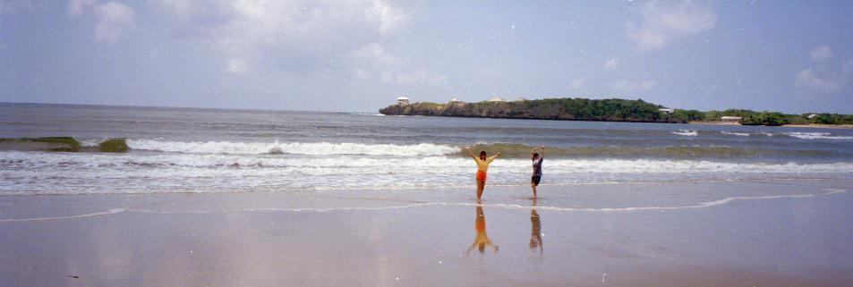 오키나와(沖繩)에서는, 어디의 비치에있는 모래도 거친 산호의 파편으로 되어 있지만, 이 해변의 모래는 달라서 잘고 퍼술퍼술한 모래입니다. 그것은, 이 해변이 우라우치강의 하구에 위치하기 위해서 산으로부터 실려져 온 산모래가 퇴적하고 있기 때문에입니다. 그 산모래와 우라우치강의 담수의 영향으로 이 해변에는 산호는 전혀 발달하지 않습니다. 따라서 잠수해 보아도 단 모래땅이 넓지는 뿐으로, 또한 투명도도 나쁘고, 슈노켈링(snorkeling)으로는 맞지 않습니다. 그러나, 풍경적으로는 뛰어난 아름다움이고, 이것만의 비치인데도 불구하고 언제나 사람은 적고, 혼자가 되고 싶은 때나 커플(couple)등에게는 절호의 장소이지요. 여기에서 바라 보는 석양도 실로 아름답고, 이 해변의 바로 정면에 새빨간 석양이 가라앉아 갑니다. 또한, 언제나 상당히 물결이 강하므로 서핑(surfing)으로도 맞고 있어서, 이리오모테에서는 아직 서핑은 그다지 왕성하지 않지만, 태풍이 접근해서 큰 파도가 나오게 되면 죽음을 두려워하지 않은 서퍼(surfer)가 자주 물결을 타고 있습니다. 이 해변의 서쪽의 가장자리에 보이는 도미 같은 모양를 한 아투쿠도에는 해적 키드(Kid) 재보의 전설이 있답니다. 종래, 쯔키가하마에는 본도로부터 덜컹덜컹 길을 지나가 가야 했습니다만, 최근 포장도로가 완성했습니다.